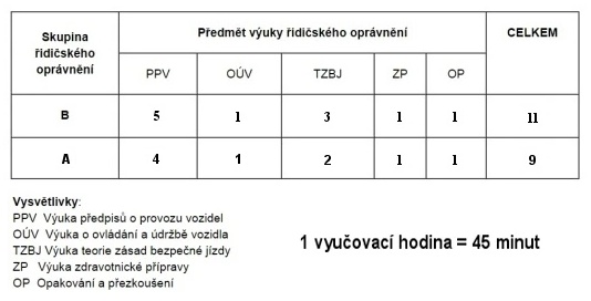 (4) Rozsah výuky a výcviku je rozdělen podle druhu výuky a výcviku a podle jednotlivých skupin vozidel, pro které se výuka a výcvik provádí.